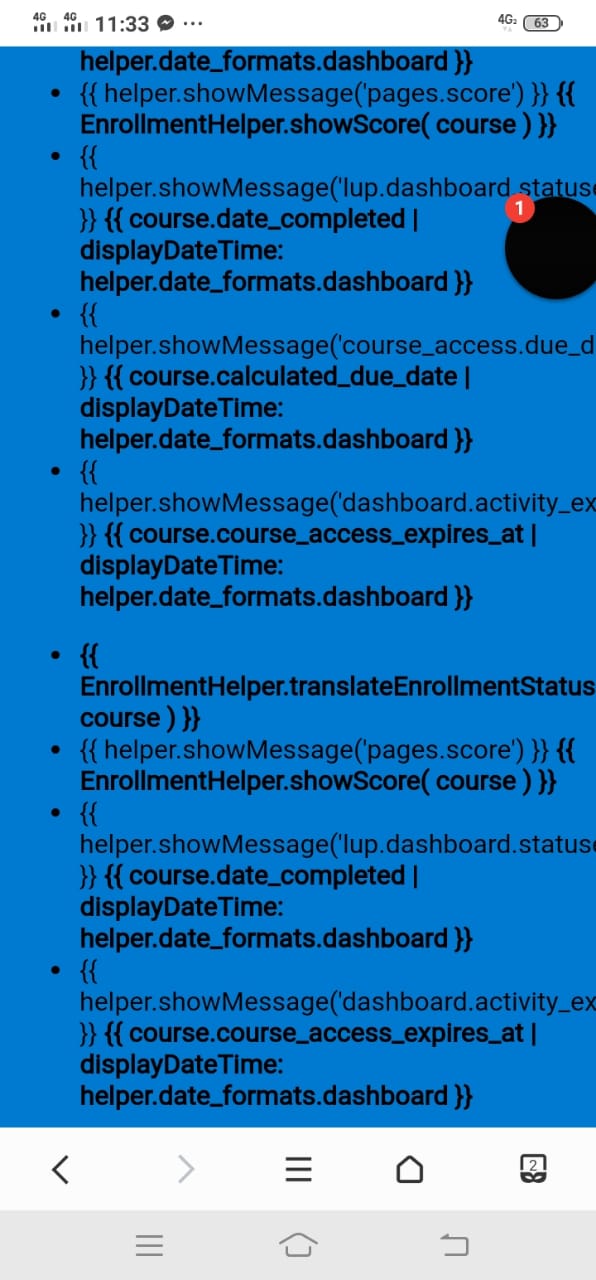 Screens were displaying as follows: